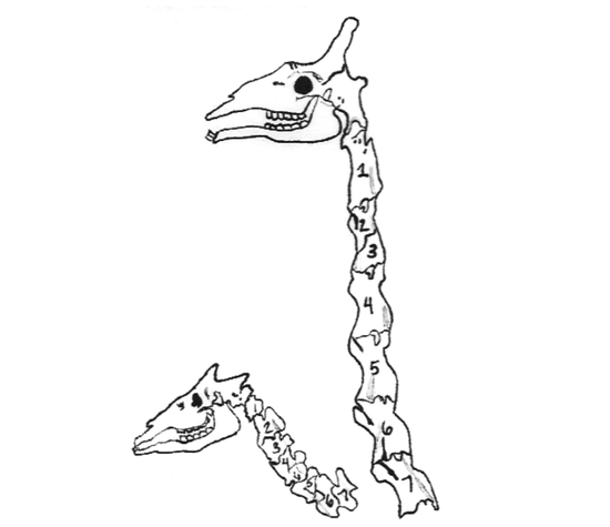例如,蛇的椎骨比老鼠的更多,蛇体内的"分割时钟"相比其他动物而言会更快。而从发育的角度来看,长颈鹿的长脖子可能来自更大的椎骨——它们的颈椎数量与近亲霍加狓(okapi)相同,但长颈鹿的椎骨有更多的时间发育得更大。