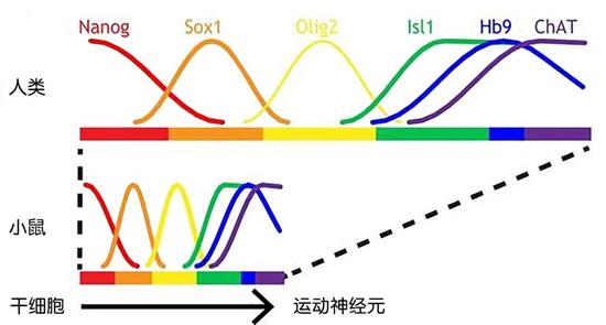 ○ 从干细胞发育到运动神经元,小鼠和人需要的时间有很大差异。| 图片来源:Briscoe & Ebisuya/Development