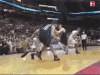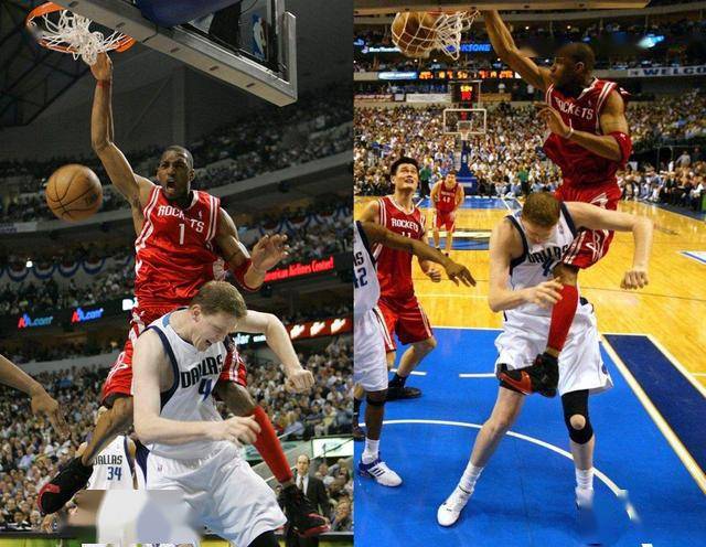 还是当年对小牛的经典镜头,这一瞬间同样是麦迪爆发力和弹跳的极致体现。开始就是一步过掉了诺维斯基,接着面对229的布拉德利麦迪也没有退让,直接骑着大竹竿完成了这记惊人的隔人暴扣。这可是229的大中锋呀,能骑着这种高度中锋扣篮只能说麦迪的弹跳着实吓人。