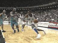 麦迪的球感是被许多人所忽略的,在身为球队主要控球手的情况下,麦迪的失误控制比绝大部分控卫都要好,这就是他顶级球感的体现。最能展现麦迪球感的就是对爵士的这一球了,先是一次运球晃倒防守球员,然后从两名防守球员中穿过去完成拉杆上篮,整个动作下来就如行云流水一般。