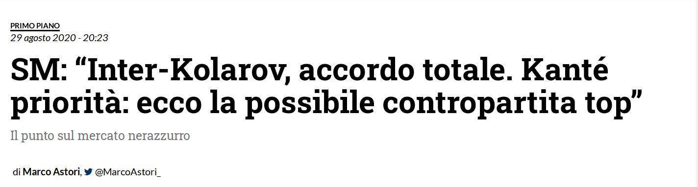不过,国米还真有可能给球迷带来一名大牌球员。《共和报》报道,科拉罗夫加盟国米的转会即将完成,同时国米的下一个重要转会目标将是坎特,他们已经与坎特取得了联系,但是切尔西对球员的要价不会低于5000万欧。