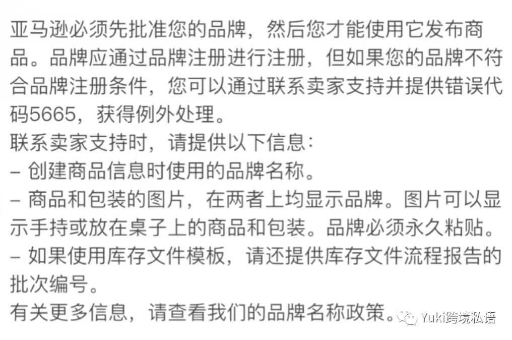 Yuki觉得申请这个品牌白名单其实很简单,就是联系"卖家支持"客服,然后提供材料证明。过程虽然比较简单,但是为什么并不是人人都能申请下来白名单?可能对于大部分来说,主要难就难在需要提供带有我们品牌Logo的产品和包装的照片。