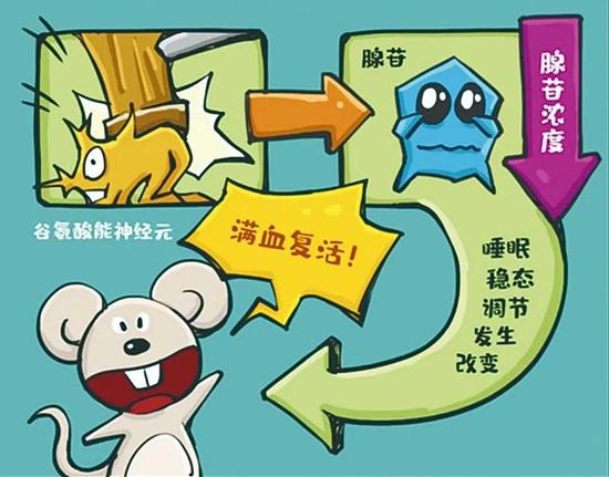 以往研究显示,"腺苷"参与到睡眠稳态调节过程中,其在清醒状态下的积累导致了"困意"的产生。