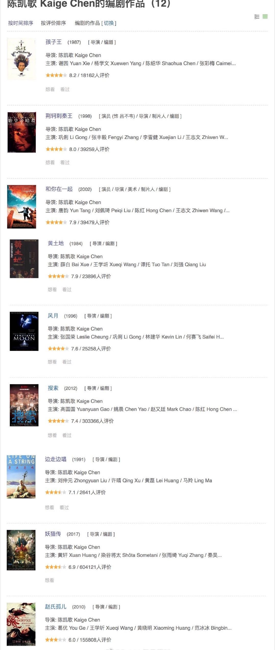 陈凯歌导演九部导演作品都是自己担任编剧和导演,而且像《和你在一起》除了担任编剧和导演,还担任演员、美术和制片人,近期的两部作品《妖猫传》和《赵氏孤儿》都是编导一体,但人家没有像郭敬明那样自嗨,没拿过什么奖,敢在导演面前班门弄斧,还真的很有意思,梁静茹给你勇气吗?