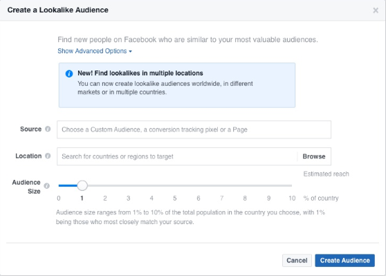 ● 源受众必须至少包含单个国家/地区的 100 名用户,以便Facebook以此为基础创建类似受众。