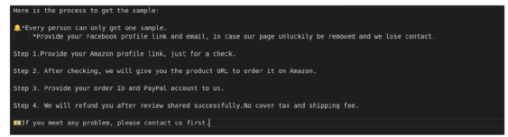该数据库及其中包含的消息揭示了可疑卖方使用的策略。一种方法是供应商向客户发送指向其要获得5星级评价的商品或产品的链接,然后客户进行购买。