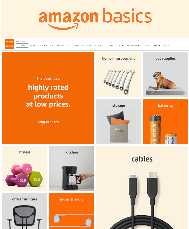 亚马逊自己的 AmazonBasics 店面是就是一个很好的例子。当你访问时,你可以大致了解他们种类繁多的产品(如果你店铺也是大量的产品,很值得参考)。不少人会特别喜欢像这样的商店采用较小的网格设计,因为有很多不同的产品要展示。图像简单、干净且直截了当 。客户肯定会与对 AmazonBasics 产品特别感兴趣的购物者产生共鸣。