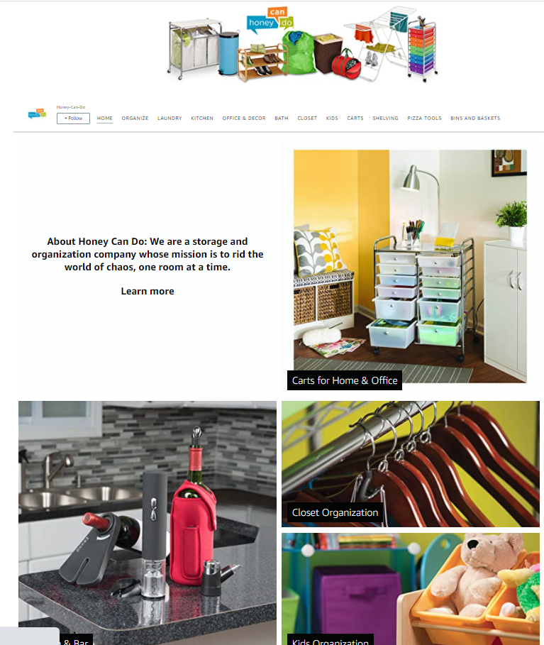 收纳类的产品,关于Honey Can Do 店面的一切都旨在说服你,组织和整理你的房子会很有帮助。从色彩鲜艳的产品图像到引人入胜的使命宣言,一切都让我们相信组织和存储实际上是令人感到舒适。
