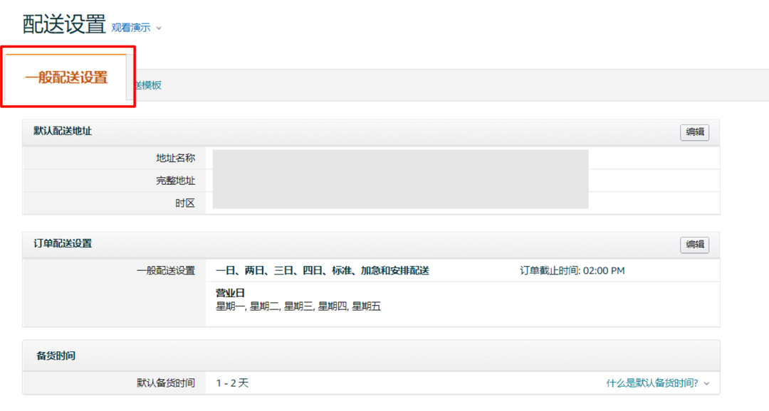 在卖家平台【设置】下点击【配送设置】>进入到【配送设置】页面上后,导航至【一般配送设置】选项卡。