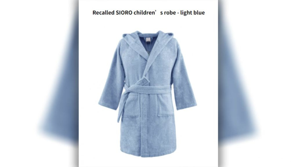 召回通知称:"购买了这种睡袍的消费者应停止使用,并与SIORO公司联系,以获得免运费退货的指示,从而获得全额退款。"