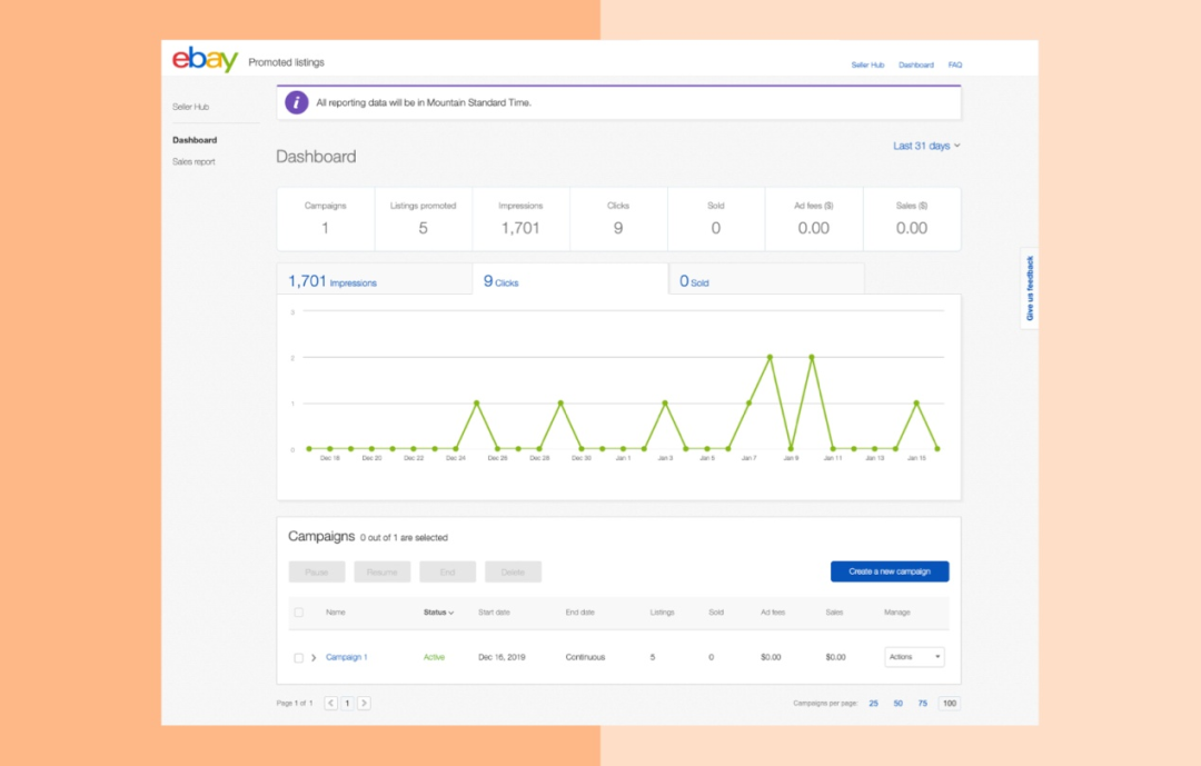 2020 年,eBay推出了升级版的广告管理平台(Advertising Dashboard),从而让卖家能够更方便地查看自己的促销刊登活动表现。目前,所有使用卖家专区并且符合条件的卖家都可以在桌面设备端获取和使用这个升级版的管理平台。