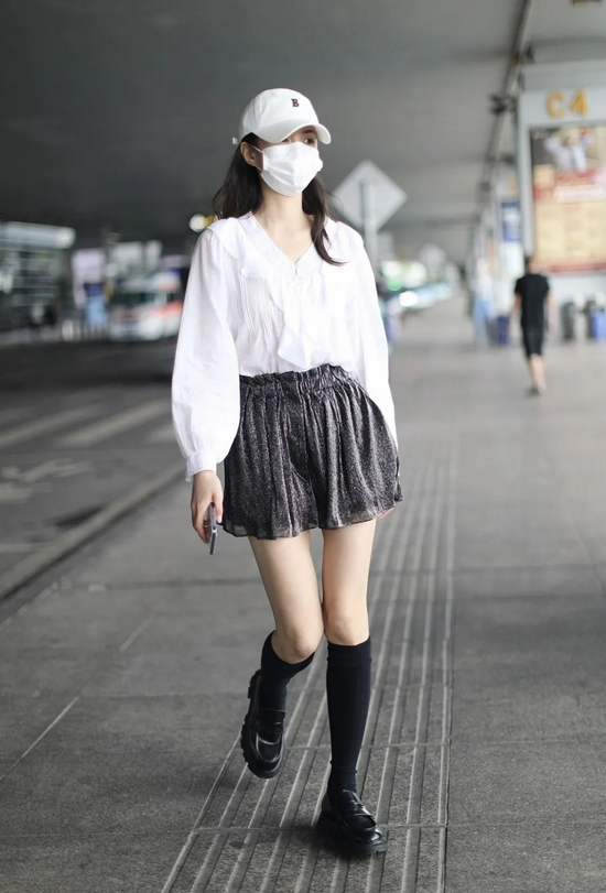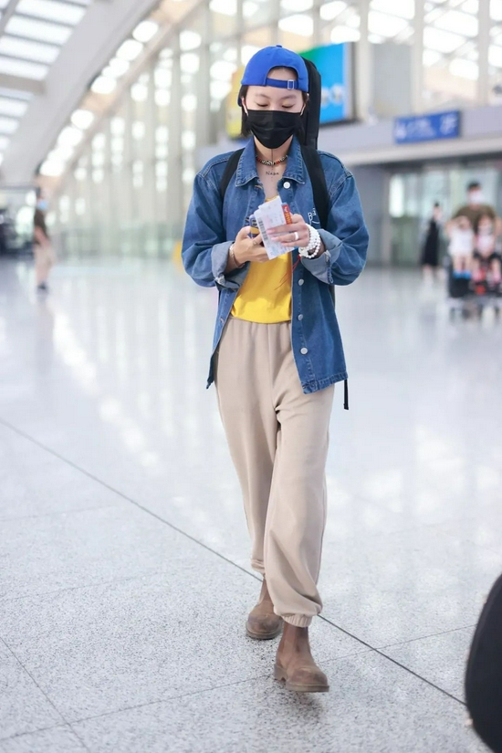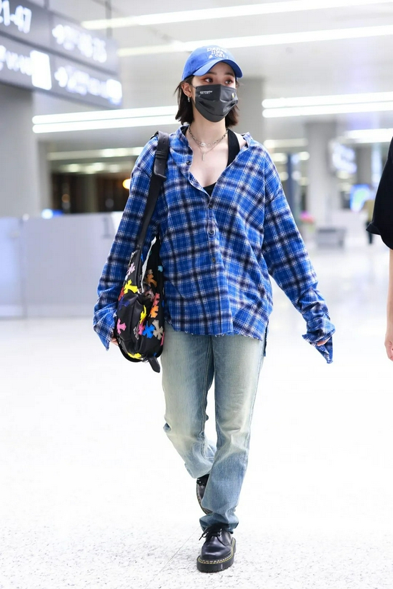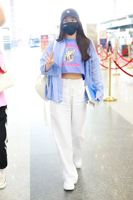 两位都是去录《哥哥》的吧?淡蓝色是最凸显气质的,和白色组合在一起,干净又大气。再配上一顶同色系棒球帽,元气满满。