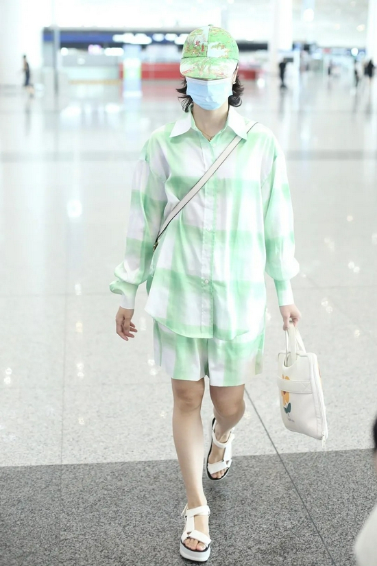 经典的蓝色牛仔套装,内搭选择了亮眼的绿色,整体造型复古又俏皮。虽然戴着口罩,但还是可以看出杨丞琳的状态不错,越来越美了。
