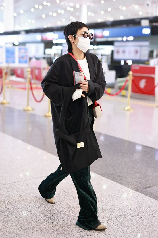 郭采洁的墨绿色绒面裤非常有个性,搭配复古的尖头牛仔靴,造型感拉满。她的街拍往往不缺造型感,但是"造型"的手法并不生硬,所以看着很舒服。
