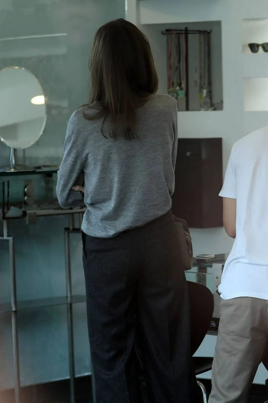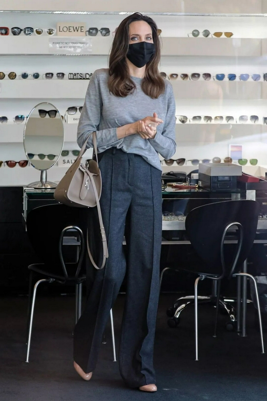 朱莉的购物造型依旧简约大方,灰色+裸色打造的低调优雅风,还是那个我们熟悉的"女神范儿",随着岁月渐增,朱莉曾经的锐气都收了起来,剩下了温柔,所谓[叛逆的优雅]代表,朱莉真的是最佳示范。