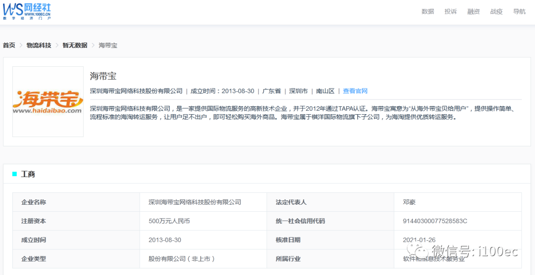 据网经社企业库(COP.100EC.CN)显示,海带宝成立于2013年,法人为邓豪。自称是一家提供国际物流服务的高新技术企业,并于2012年通过TAPA认证。海带宝寓意为"从海外带宝贝给用户",提供操作简单、流程标准的海淘转运服务,让用户足不出户,即可轻松购买海外商品。海带宝属于棋洋国际物流旗下子公司,为海淘提供优质转运服务。
