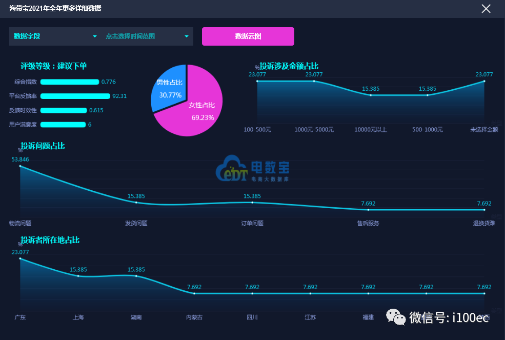 导读:2月28日,网经社通过对"海带宝"(深圳海带宝网络科技股份有限公司运营)2021年电诉宝受理的全年真实用户投诉案例大数据分析,公布了"海带宝 "2021年电诉宝消费评级数据、年度投诉数据及典型案例。
