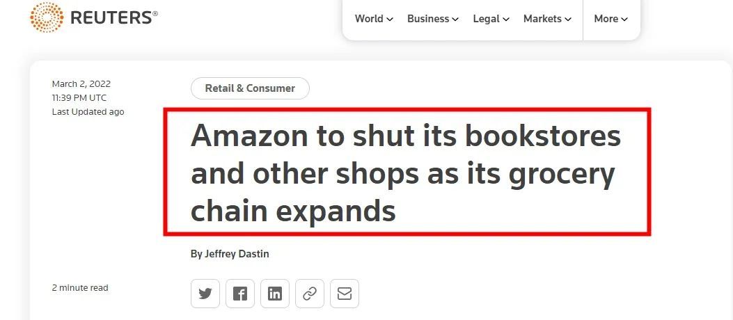包括亚马逊书店(Amazon Books)、亚马逊四星级店以及亚马逊弹出网站(Amazon Pop Up),但关闭日期将有所不同,具体日期尚未确定。