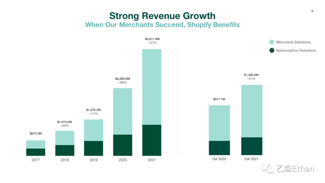 一般来说上市公司突然新闻多了往往是因为发布了财报。Shopify于2月17日发布了其2021 Q4及2021全年财报: