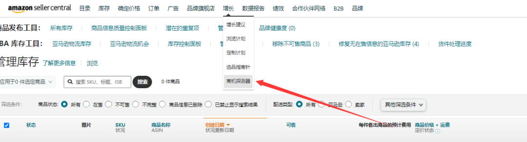 而依次点击"商品""搜索词""洞察""Trends"分别会出来不同的分析页面,这个页面分为4个细分的分析方式,如下,