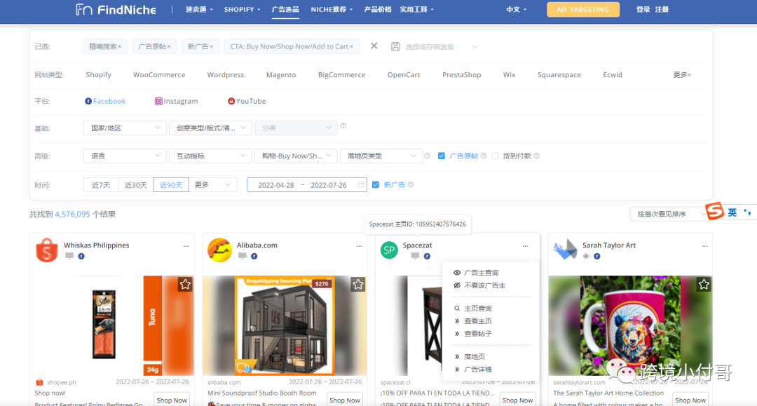 FindNiche通过高级算法抓取速卖通的Shopify的电子商品店铺,为您提供各热门细分市场中超过3000万的商品详细信息。你可以查看产品的订单数量、竞争度、产品在哪些国家/地区表现好、查看商品定位的FB广告投放情报等。