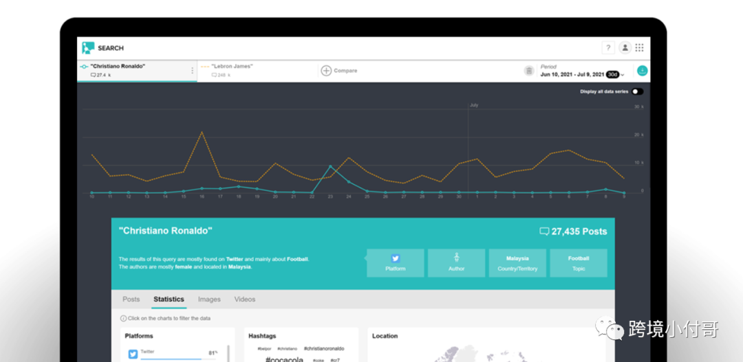 Linkfluence 将市场研究带入社交媒体时代。通过将人工智能、数据科学和市场研究专业知识应用于全球社交数据的实时馈送,我们可以实时为您提供高价值的消费者洞察,而无需等待数月才能创建报告。Linkfluence主要是一款针对Facebook、Twitter、Instagram、新浪微博以及其他网站论坛的追踪分析工具。其支持人口统计分析,用户情绪、表情符号等追踪。其核心是社交数据。它将数字数据的即时性与经过验证的消费者和市场洞察方法的严谨性相结合。它使您可以随时访问可靠、结构化的定量和定性情报。