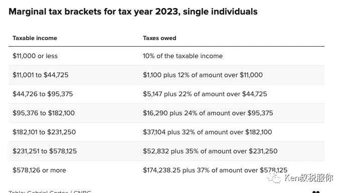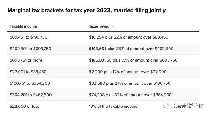 这些括号显示您将在"应税收入"的每个部分中欠多少联邦所得税,计算方法是从调整后的总收入中减去标准或逐项扣除中的较大者。