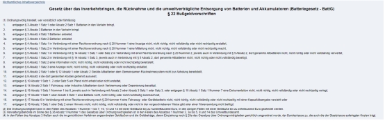 (德国电池法BattG关于行政处罚的规定)