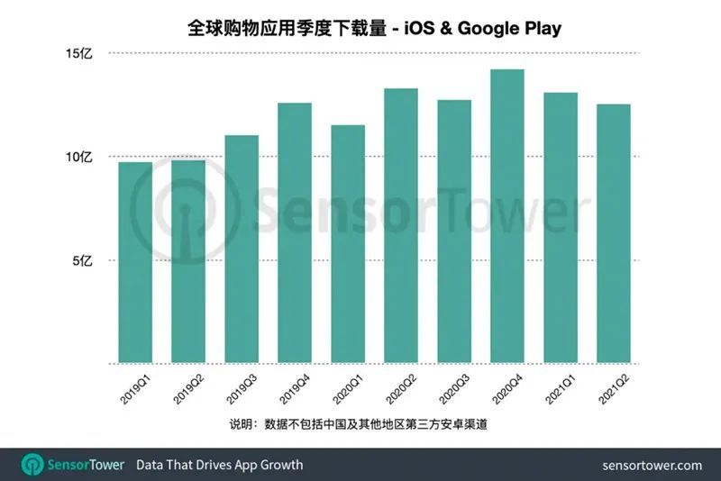 2020 年初疫情全球爆发,在居家令的限制下,人们的网购需求激增,使得购物类应用下载量在去年 Q2 出现爆发式增长。