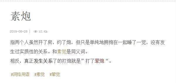 什么是"素炮"呢,意思就是说两个人约pao,开了房但不发生实际意义上的关系,只是单纯地抱在一起睡觉。