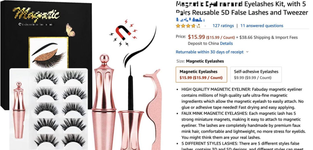 比如我们自己的运营团队之前在做产品开发的时候,就开发过一款产品:假睫毛,这款产品的市场体量非常之大。