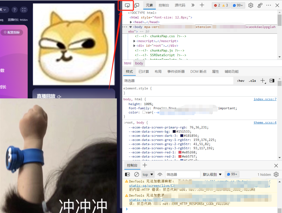 5、按F12打开开发者工具,在开发者工具的左上角有一个如图所示(红框内)的图标,点击该图标。(PS:如果按F12没反应就按Fn+F12)。