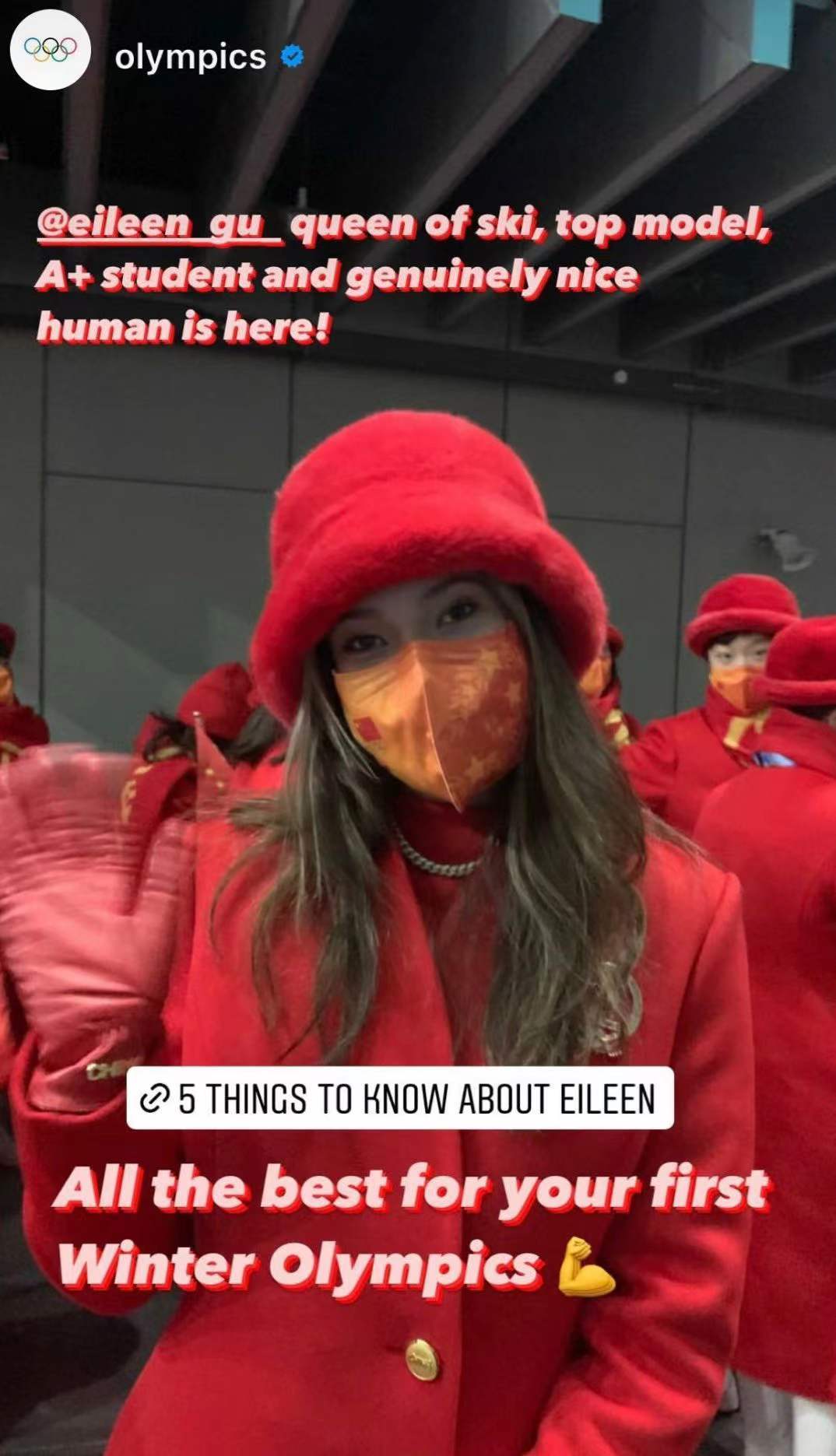 谷爱凌一袭红衣现身开幕式
