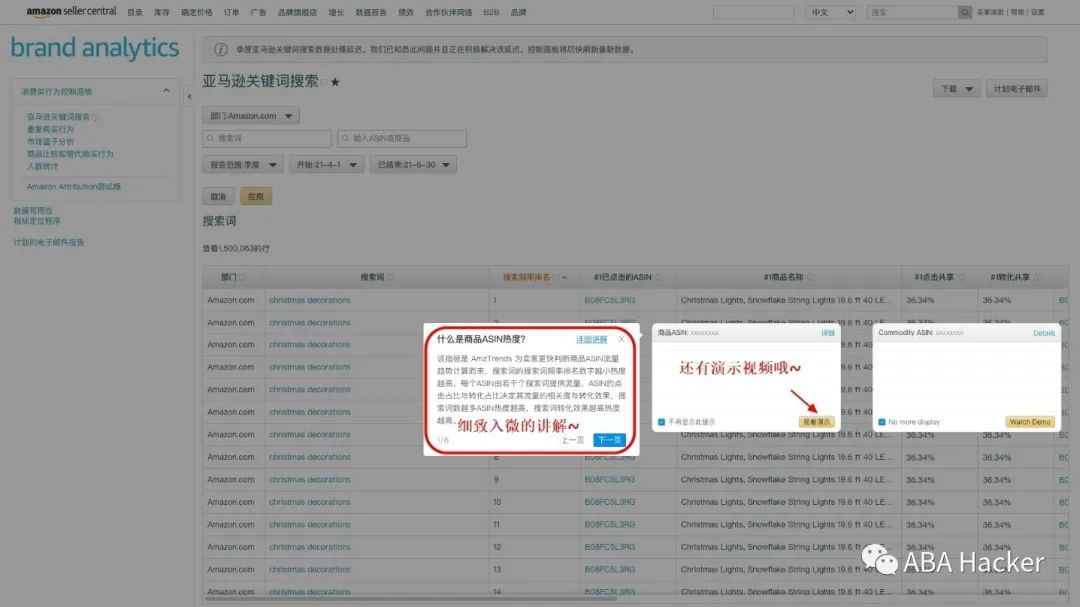 这里用"ASIN热度趋势"指示为例,可以看到这个数据的意义是能够快速判断商品ASIN流量趋势,通过这条趋势图,我们能够了解商品所处阶段、热度值、市场需求度如何等信息。如果热度较高,则表明该商品的转化效果更好,对应及时做储备,就能很快占领市场。