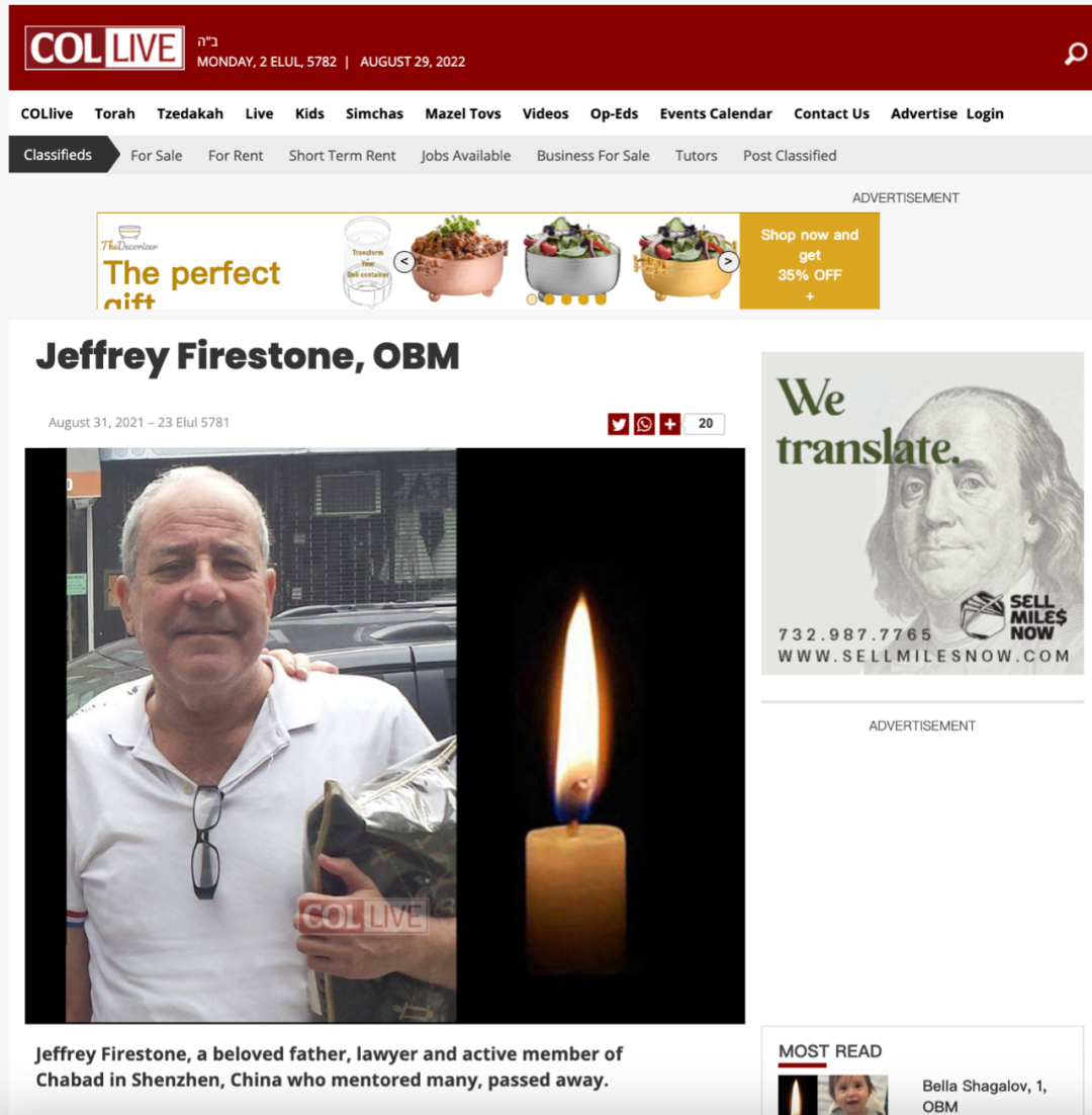 冒用去世律师的名义提交申请美国律师Jeffrey Stewart Firestone已于2021年7底去世,但在2021年8月以后,仍有超过300份的美国商标答复以他的名义提交。